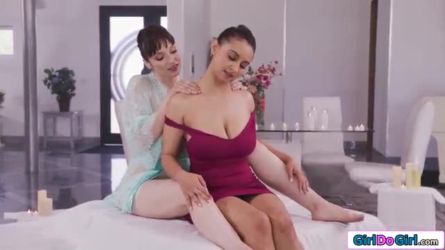 Description: Busty milf Lexi Luna gives a nude body slide massage to latina bff Hailey Rose.She rubs her tits against her big boobs and makes her nipple hard with her tongue.The cougar fingers and licks the petite brunette and gets her shaved pussy eaten